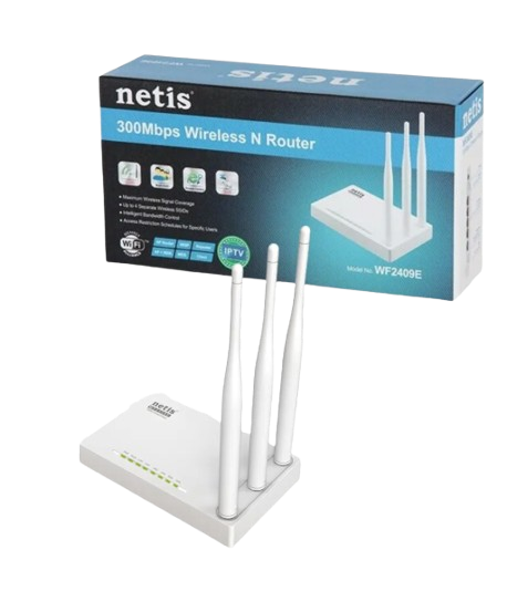 The Netis WF2409E Wireless N Router is a high-performance and budget-friendly Wi-Fi router, perfect for home and small office use. With 300Mbps wireless speed and 3 high-gain 5dBi antennas, it ensures wide coverage and stable internet for smooth browsing, online gaming, and HD streaming.